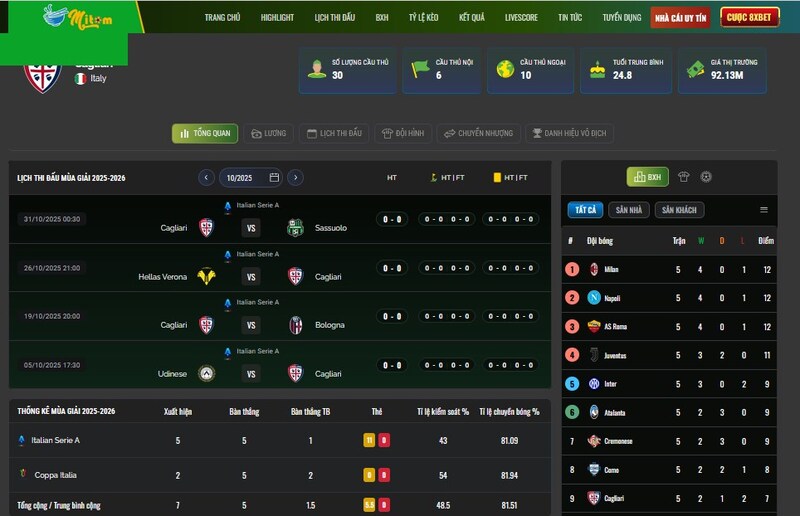 Nếu anh em muốn vừa cháy hết mình cùng từng pha bóng, vừa nắm chắc cục diện giải đấu qua bảng xếp hạng, thì MiTom TV chính là bến đỗ lý tưởng. Với mình, đây không chỉ là một website xem bóng đá, mà còn là nơi để sống cùng từng nhịp đập của Serie A từng ngày, từng giờ!