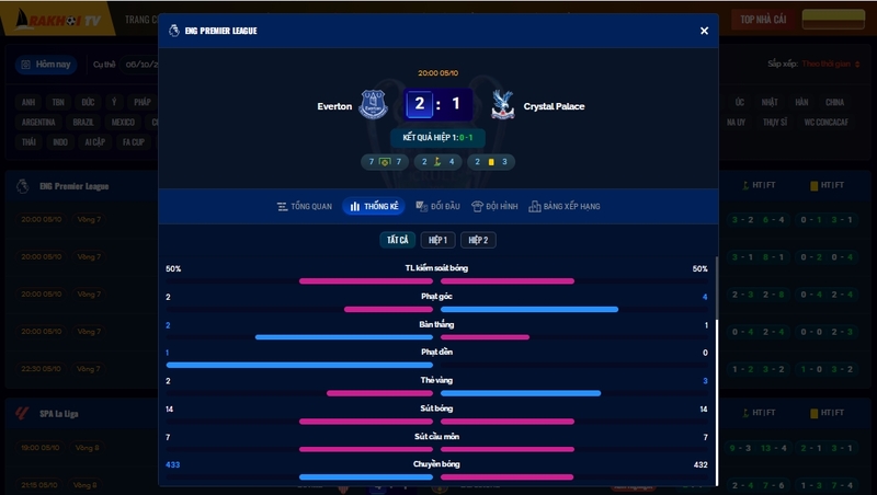 Điều làm RakhoiTV khác biệt so với hàng loạt website khác chính là: Mỗi kết quả đều được gắn liền với dữ liệu mở rộng. Anh em bấm vào một trận cụ thể, sẽ thấy ngay: